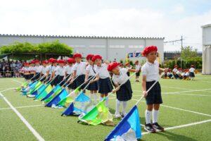 年長児の園旗入場と、元気な選手宣誓でスタートです!