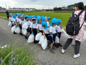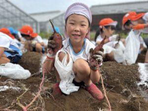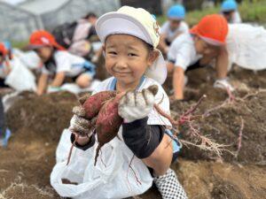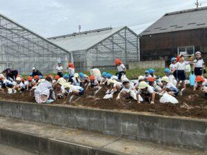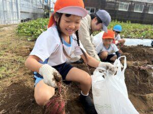 お芋ほりは、園バスに乗って、市内の畑で行います。