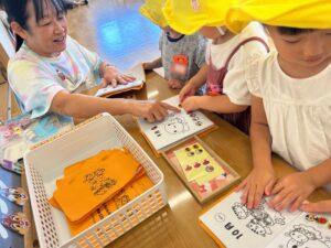 紙芝居や絵本を見て、おかえりの挨拶をします。