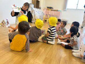 紙芝居や絵本を見て、おかえりの挨拶をします。