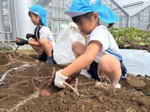 お芋ほりは、園バスに乗って、市内の畑で行います。