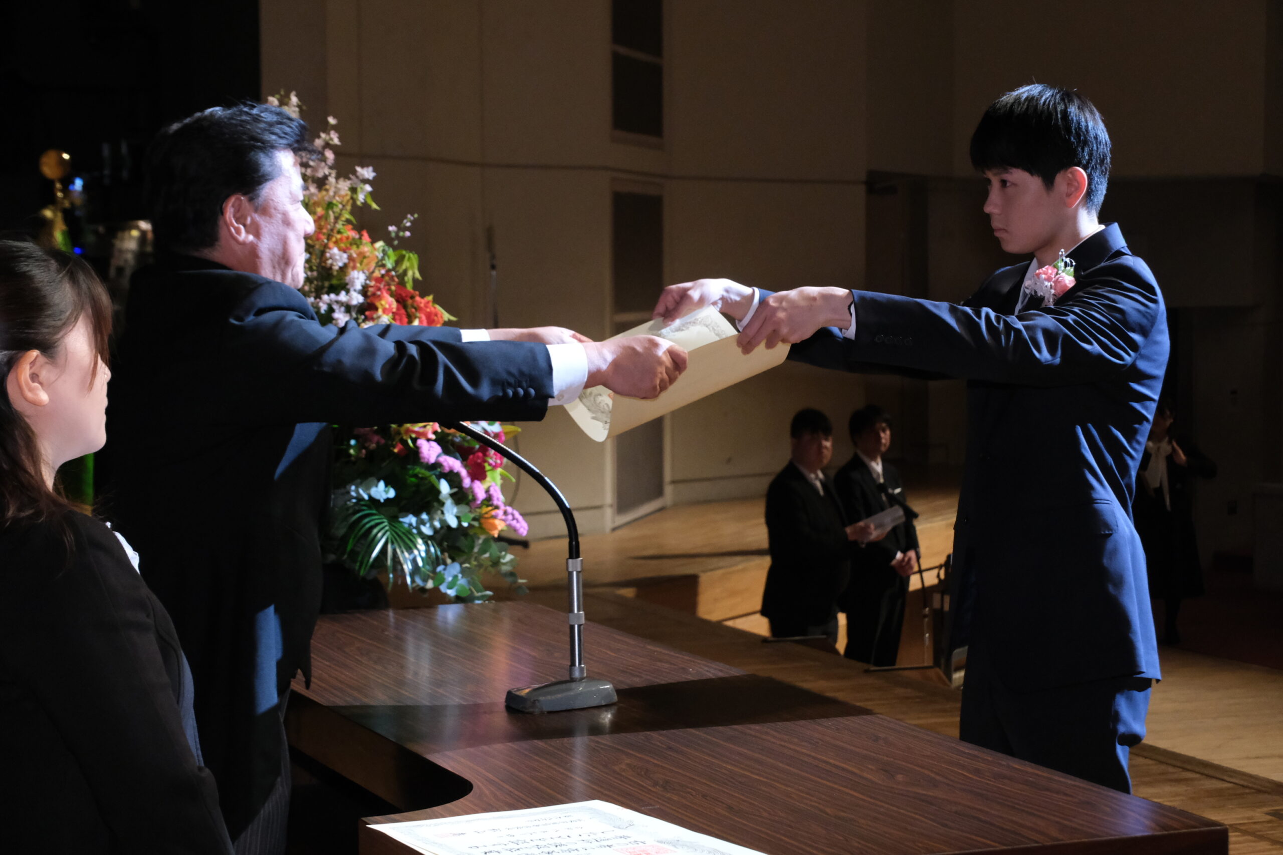 最初に、各代表者の卒業生に卒業証書が授与されました。