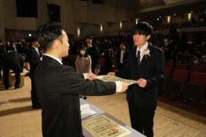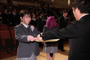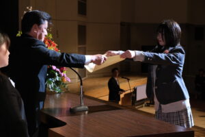 閉式後は、卒業生一人一人に慣れ親しんだ先生から卒業証書が受け渡されました。