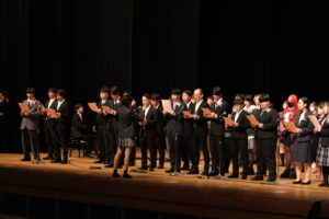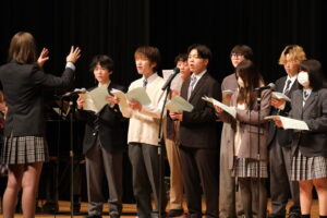その後、在校生の校歌委員の皆さんから歌のプレゼントが贈られました。