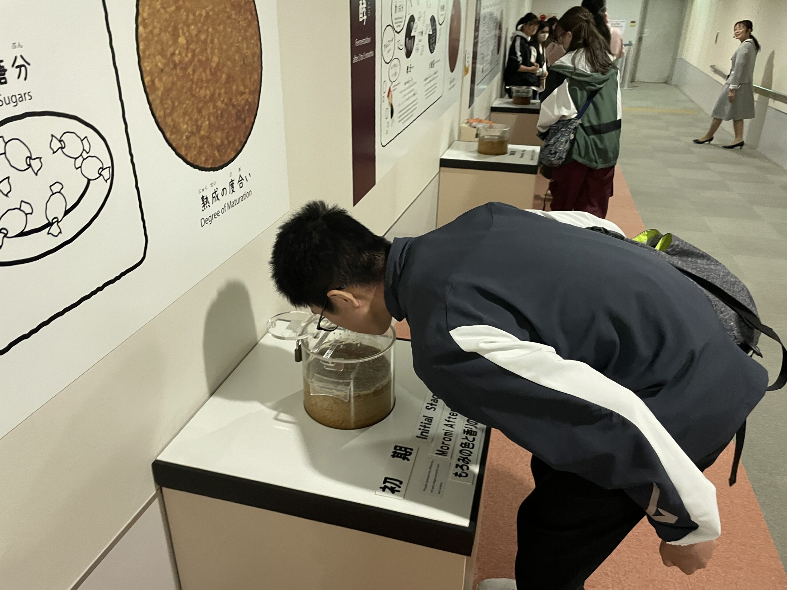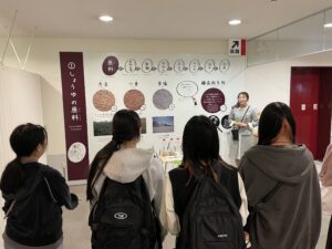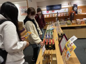 お土産を購入する生徒さんや、豆カフェで「醤油ソフトクリーム」