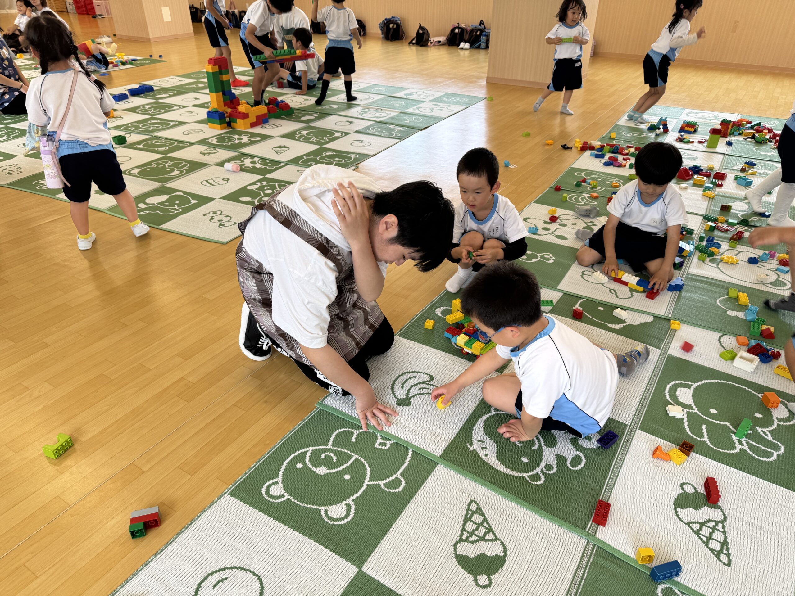 預かり保育の時間に、小さいお子さんと一緒に遊ぶ