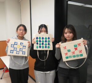 今回は、横浜美術大学の先生をお招きして、「オリジナル柄のバッグ作り」を行いました。