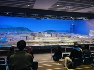 館内では、まず最初にガイド付き鉄道ジオラマを見学しました。説明をしてくださった博物館の方の話に耳を傾けながら、生徒さんは写真や動画などを撮るなどして楽しんでいました。